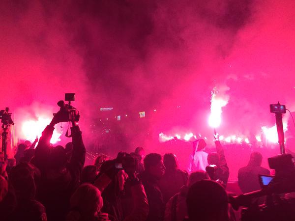 Участники акции почтили минутой молчания память погибших в ходе АТО, а в завершение зажгли фаера.